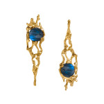 Σκουλαρίκια με λίθο Λαμπραντορίτη, από την Συλλογή Aurora. Ιριδίζων κρύσταλλος με αιθέρια χρώματα κατά την αντανάκλαση του στο φως, συνδεδεμένος με την πνευματική δύναμη και την εμπιστοσύνη στον εαυτό μας και στο σύμπαν. Θεωρείται λίθος προστάτης, καθώς εκτρέπει τις ανεπιθύμητες ενέργειες και ενισχύει την αύρα. Ένα κόσμημα σχεδιασμένο ώστε να αγκαλιάζει την πέτρα, δημιουργώντας την αίσθηση της ενότητας, αναδεικνύοντας τις ιδιότητες του λίθου.