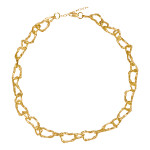 Choker περιδέραιο από την Συλλογή Ναϊάδα, αποτελούμενο από αλυσιδωτές ακανόνιστες μορφές. Φέρει την αίσθηση της ρευστότητας, των μεταμορφώσεων, των ήχων του Νερού. Μια συλλογή εμπνευσμένη από το Νερό, το δεύτερο στοιχείο της Φύσης.