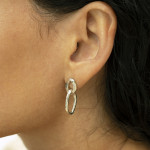 Ασημένια σκουλαρίκια από την Συλλογή The Blacksmith που αποτελούνται από δύο αλυσιδωτούς ακανόνιστους κρίκους . Χαρακτηρίζονται από τραχιές επιφάνειες, εγκοπές και εγχαράξεις δίνοντας την αίσθηση του ακατέργαστου.