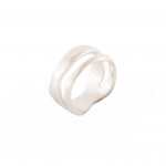 Ασημένιο δαχτυλίδι από τη Συλλογή Αφθονία που αποτελείται από δύο παράλληλες μορφές που αγκαλιάζουν αρμονικά το δάχτυλο και διασταυρώνονται. Η καθαρότητα της υφής σε συνδυασμό με την καμπυλότητα της φόρμας προσδίδουν την αίσθηση της Αφθονίας.