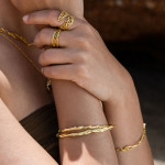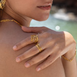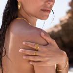Δαχτυλίδι από επιχρυσωμένο ασήμι, από την Συλλογή Αλμύρα. Η οργανική του φόρμα και οι λεπτομέρειες στην υφή δημιουργούν ένα μοναδικό αποτέλεσμα.