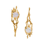 Σκουλαρίκια με Rainbow Φεγγαρόπετρα, από τη Συλλογή Aurora. Ιριδίζων κρύσταλλος με αιθέρια χρώματα κατά την αντανάκλαση του στο φως, συνδεδεμένος με την θηλυκή ενέργεια και τον κύκλο της Σελήνης. Ένα κόσμημα σχεδιασμένο ώστε να αγκαλιάζει την πέτρα, δημιουργώντας την αίσθηση της ενότητας, αναδεικνύοντας τις ιδιότητες του λίθου.