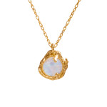 Κολιέ με Rainbow Φεγγαρόπετρα, από την Συλλογή Aurora. Ιριδίζων κρύσταλλος με αιθέρια χρώματα κατά την αντανάκλαση του στο φως, συνδεδεμένος με την θηλυκή ενέργεια και τον κύκλο της Σελήνης. Ένα κόσμημα σχεδιασμένο ώστε να αγκαλιάζει την πέτρα, δημιουργώντας την αίσθηση της ενότητας, αναδεικνύοντας τις ιδιότητες του λίθου.