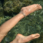 Silver ankle bracelet consisting of chain links in an organic form. The floral relief element that morphologically prevails and the shiny details in texture create a unique effect.
