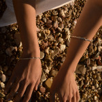 Silver bangle bracelet from the Fragments Collection. Choose the size you prefer as it can be worn on the wrist or on the arm. Tierra II bangle can be worn on the forearm, anywhere between the widest point of the arm and the wrist bone. Its organic form and the details in texture create a unique result.