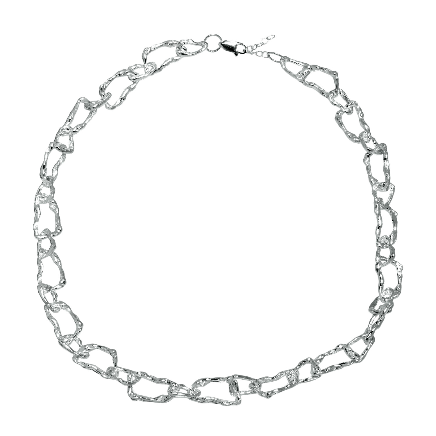 Silver choker necklace from the Naiad Collection, consisting of chained irregular forms. It carries the sensation of fluidity, of the transformations, of the sounds of Water. A collection inpired from the Water, the second element of Nature.