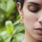 Gold plated hoops from the Ether Collection. The natural harmony in the form gives the sensation of an endless fluidity. A special jewel, light and comfortable, ideal for any occasion.