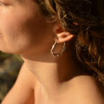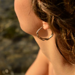 Silver hoop earrings from the Thallus Collection in an organic form. The floral relief element that morphologically prevails and the shiny details in texture create a unique effect.