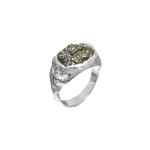 Silver Pyrite ring from the Naiad Collection. It carries the sensation of fluidity, of the transformations, of the sounds of Water. The name of the stone comes from the Greek words "sidiros" (iron) and "pyr" (fire), because it was believed that generate pyr (fire). A jewel that connects the second and third elements of nature. Water and Fire.