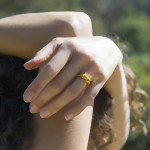 Gold plated silver ring from The Blacksmith Collection, marked by its rough surfaces and engravings giving the feeling of rawness.