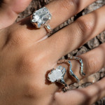 Silver ring with Herkimer Diamond. Herkimer Diamond has excellent transparency and belongs to the Quartz family. It is associated with spiritual elevation and creativity. It is believed to stimulate perception, give energy and help remove stress by dissolving emotional tensions. Silver discreetly embraces the crystal, creating a unique piece of jewelry, designed to honor the morphology and properties of the stone. Every piece of jewelry and every gemstone of the One Of A Kind Collection is unique. All pieces are made once. If you are interested in having a unique piece of jewelry created for you, with the gemstone you desire, you can contact us to design your unique piece together.
